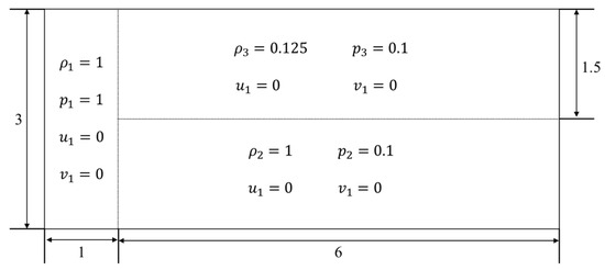 - Woodward, P.; Colella, P. The numerical simulation of two-dimensional fluid flow with strong shocks. J. Comput. Phys. 1984, 54, 115–173. [Google Scholar] [CrossRef]