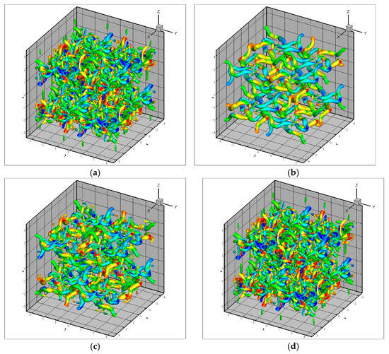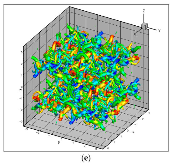 - Brachet, M.E.; Meiron, D.I.; Orszag, S.A.; Nickel, B.G.; Morf, R.H.; Frisch, U. Small-scale structure of the Taylor–Green vortex. J. Fluid Mech. 1983, 130, 411–452. [Google Scholar] [CrossRef]