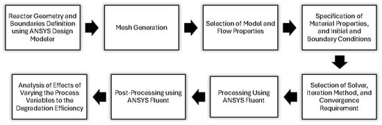 - Devipriya, B.; Mohanan, S.; Surenjan, A. CFD Modelling of an Immobilised Photocatalytic Reactor for Phenol Degradation. Water Sci. Technol. 2023, 88, 2121–2135. [Google Scholar] [CrossRef]