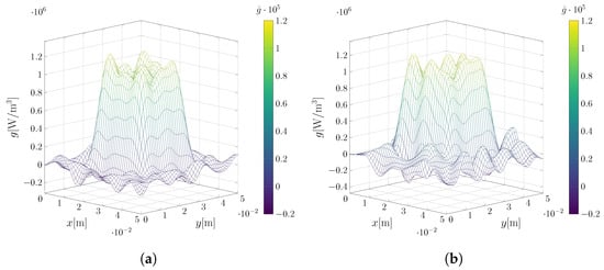 with  t [ 0 , t max ] . This representation allows for straightforward analytical integration of the integral in Equation (24), yielding an algebraic expression for the calculated potential in terms of constant expansion coefficients of the unknown source term, here denoted as  G :