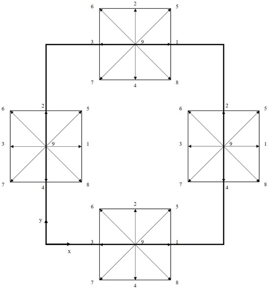 However, the components in the 2, 5, and 6 directions are unknown. The closure of the system of equations is based on admitting that the bounce-back rule is applied to the non-equilibrium portion () of the function distribution in the normal, 2, and 4 directions: