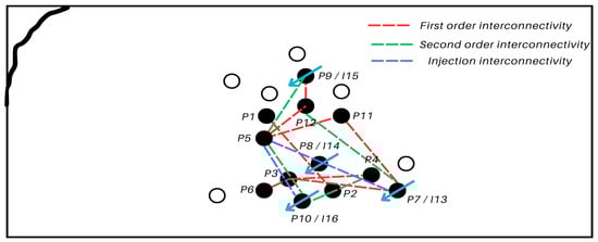 Figure 12. The final interconnectivity state for the year 2020. In the figure, the interconnections that were unveiled with our methodology are shown. These interconnections show the emerging patterns of interconnectivity found for all the years of data that were used in the assessment. - Temporal Consistency: Connectivity patterns persisted across different time intervals, reflecting stable reservoir dynamics and reinforcing reliability.