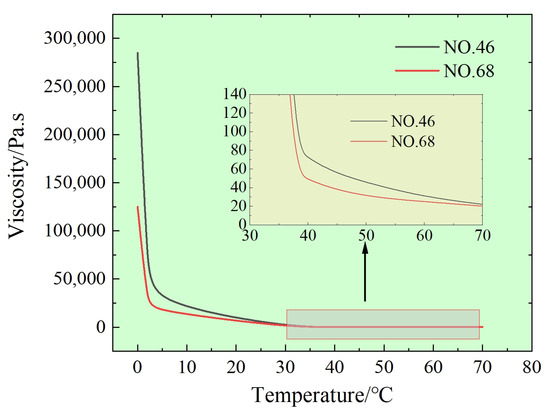 where is the absolute temperature of oil, and is 300 K. The numerical change in oil viscosity at different temperatures is shown in Figure 2. As can be seen from the figure, the viscosity of oil varies greatly between 0 °C and 40 °C, gradually stabilizes after 40 °C, and is very sensitive to temperature change.