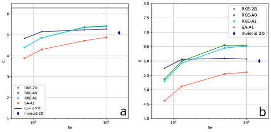 Reynolds number dependence of the lift coefficient (a) and aerodynamic quality (b)—summary of RANS simulations from Table 2.