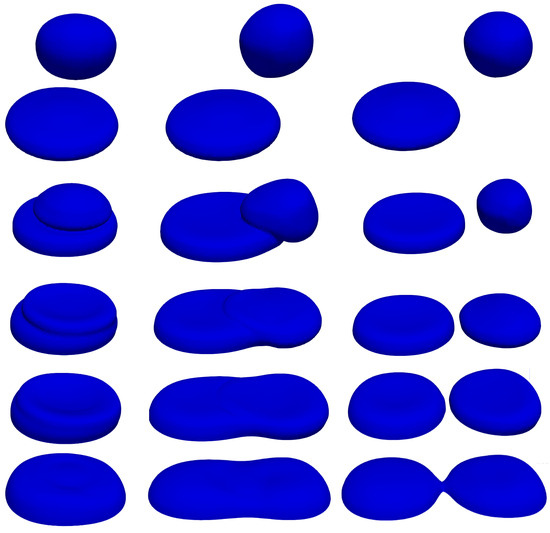 - Baroudi, L.; Kawaji, M.; Lee, T. Effects of initial conditions on the simulation of inertial coalescence of two drops. Comput. Math. Appl. 2014, 67, 282–289. [Google Scholar] [CrossRef]