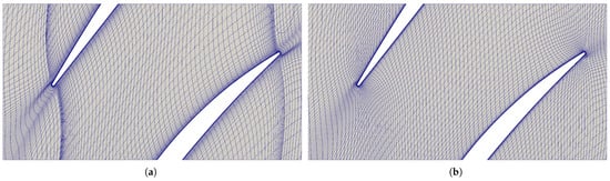 - Vivarelli, G.; Qin, N.; Shahpar, S.; Radford, D. Efficient Adjoint-Based Mesh Adaptation Applied to Turbo-Machinery Flows. In Proceedings of the ASME Turbo Expo 2018: Turbomachinery Technical Conference and Exposition, Oslo, Norway, 11–15 June 2018. [Google Scholar]