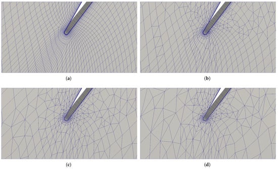 - Vivarelli, G.; Qin, N.; Shahpar, S.; Radford, D. Sequential feature-based mesh movement and adjoint error-based mesh refinement. Int. J. Numer. Methods Fluids 2021, 93, 249–272. [Google Scholar] [CrossRef]