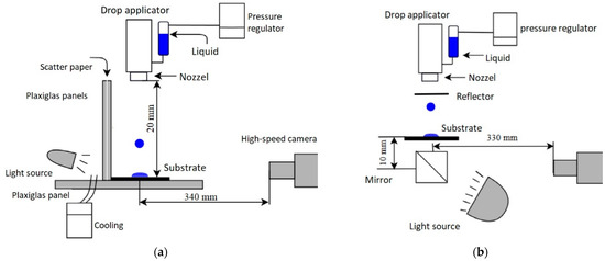 Experimental single droplet setup: (a) side observation, (b) upward observation.