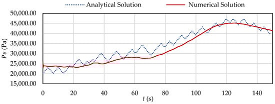 The comparison between the numerical solution and the analytical solution based on Bernoulli’s equation is conducted by measuring the static pressure on the SHP, using the center of gravity as a reference. Numerical simulation plays a crucial role in analyzing scenarios that go beyond the inherent simplifications of the analytical solution. While Bernoulli’s equation provides an adequate description for ideal conditions, numerical modeling incorporates more complex phenomena, such as energy dissipation and fluid dynamic interactions, resulting in a more comprehensive and applicable analysis for real-world situations. However, due to the potential inaccuracies associated with numerical methods, analyzing the errors involved becomes essential. These errors are assessed by comparing the pressure differences between the analytical and numerical solutions, as well as in the process of the verification and validation of numerical models [,].