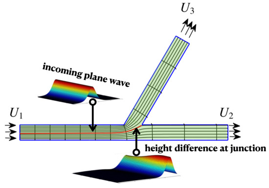 Irrespective of the fluids’ application, flow on graphs is a topic of current mathematical interest. It falls in a category of problems which has attracted a great deal of attention recently: quantum graphs. Quantum graphs are defined as metric graphs equipped with a differential equation along it’s edges [1,2,3]. Very recently, Goodman et al. [4] published an article pointing to a MATLAB (version R2023b) package for computations on quantum graphs, mostly specialized for elliptic problems. Goodman et al. present a brief introduction to quantum graphs, containing many references to recent work. The mathematical literature on wave propagation on graphs is not as abundant as for flows on graphs [5,6] or steady waves on graphs [1]. It is almost inexistent for wave reflection and transmission at the forked region.