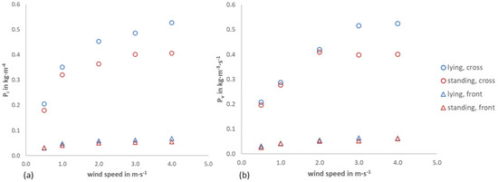 Resulting values for resistance coefficients for the porous cow model: (a) inertial resistance coefficient Pi in kg·m−4; (b) viscous resistance coefficient Pv in kg·m−3·s−1.