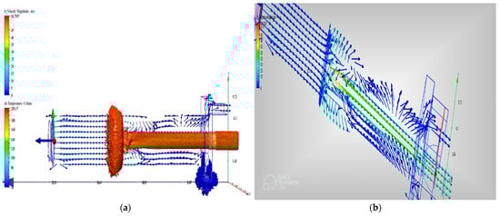 According to the analysis carried out, the problems of the variables were identified. The air velocity in the fan and the temperature in the radiator were modified. The results obtained after assigning the boundary conditions to the elements in the digital twin are shown in Figure 8.