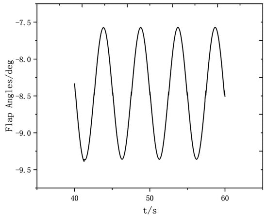As shown in Figure 7, it can be seen from the variation in the deflection angle of the trailing edge flap with time that the deflection and load changes in the trailing flap show a periodic change trend. At the same time, we fit the curve of the trailing flap angle with time as a function of time and write a UDF as a CFD boundary condition and input Fluent.