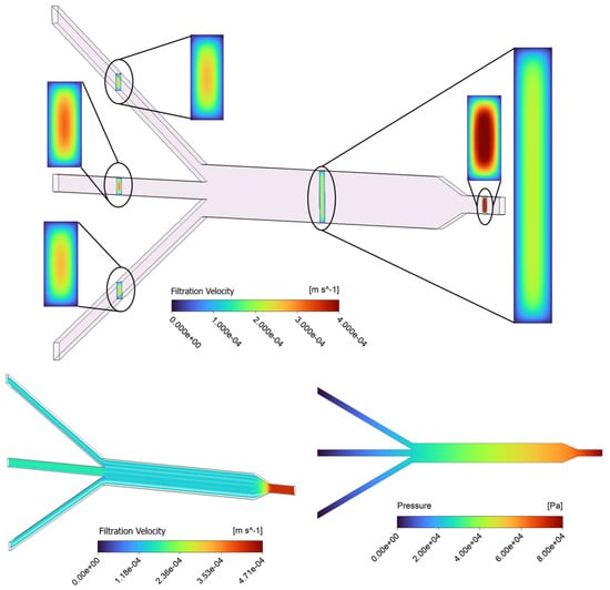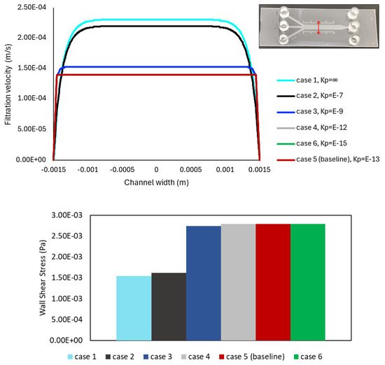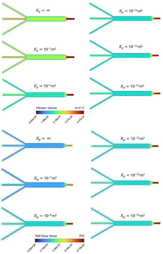 3.1.1. Effect of Matrix Permeability: Filtration Flow and Shear Stress Analysis