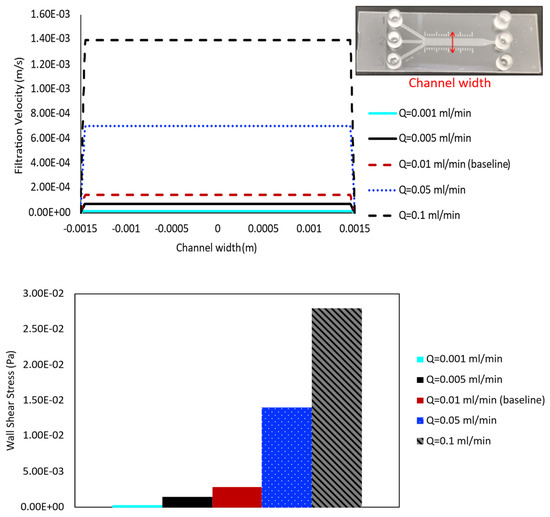 3.1.2. Effect of Perfusion Flow Rate: Filtration Flow and Shear Stress Analysis