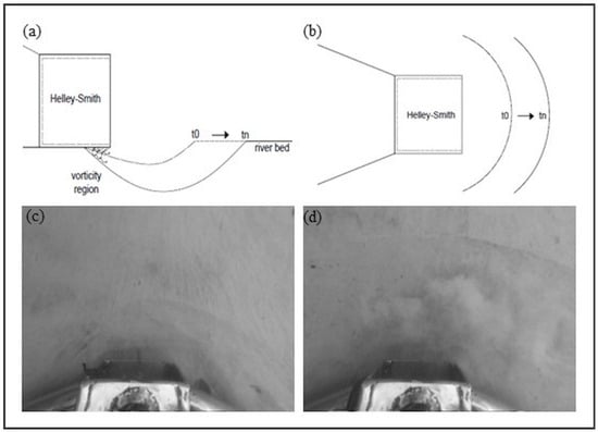 The PIV technique can obtain better measurements of bed-particle displacement when there are images with high contrast, low noise, and density relevant to the analysis; however, images are usually subject to non-uniform illumination, contrast limitation, and water impurity [26,49]. Thus, pre-processing is one of the most important steps in PIV analysis [59]. This approach improves measurements of particle displacement [60] (Figure 4).