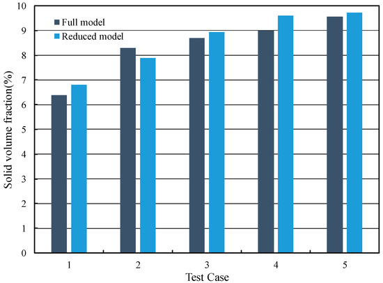 Comparison of the solid volume fraction between the reduced model and the full model.