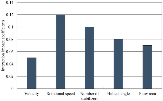 The stabilizer flow area, as a critical geometric parameter affecting fluid passage capacity and disturbance intensity, shows a moderate influence in the interaction analysis. Selecting a flow area of 40–45% balances maintaining the disturbance intensity while avoiding excessive obstruction to the main flow path, facilitating an optimal trade-off between carrying performance and pressure-loss control.