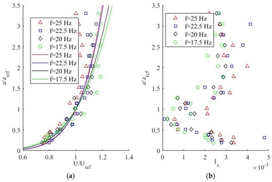 (a) Velocity profile and corresponding fit. (b) Turbulent intensity profile at four different pump frequencies (f) given in Hertz in the legends. Reproduced with permission from [30].