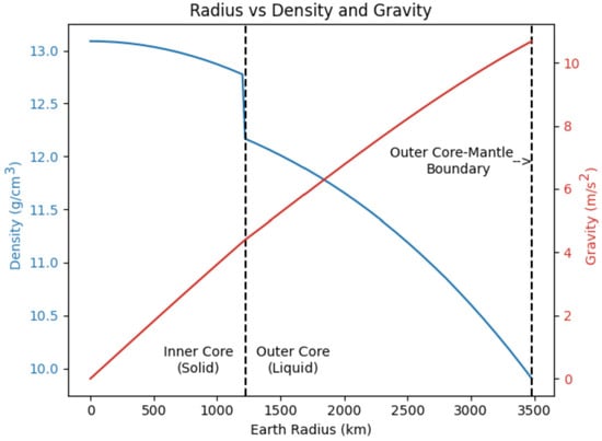 Gravity acts on density variation, which is, therefore, required for gravity and its stratification to affect the flow; Equations (27)–(30) confirm that for gravity stratification to significantly manifest itself in the flow, the effect of density stratification cannot be negligible. In fact, on setting r = 1, some interesting observations are worth noting here. The effect of gravity stratification vanishes entirely from Equations (27) and (28) for the velocity components, which is expected because the full Navier–Stokes equations show that, without density variation, gravity only affects the vertical pressure profile and not the velocity field. The velocity field is now independent of any parameter, namely of both G and a, while the deviation from the linear pressure profile is due to the variation in gravity. The velocity profile is parabolic and of the Poiseuille–Couette type, as seen in Equation (32). Consequently, unlike density stratification, gravity stratification alone cannot lead to vortex generation. Gravity stratification remains only influential on the pressure as Equation (29) suggests, which is reduced to the following: