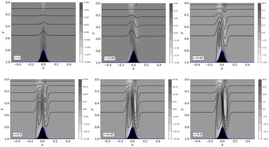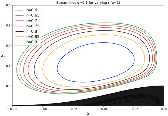 29]. Upon further decreases in r, the figures for r = 0.85 and 0.8 indicate that the vortex structure remains essentially and qualitatively unchanged, but the vortical flow intensifies, as reflected by the tightening of the streamlines.