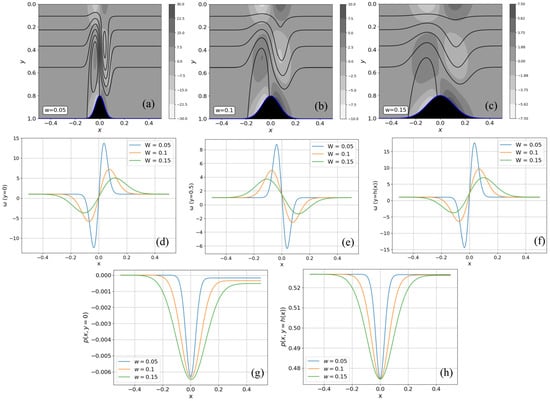 Finally, we consider the impact of the obstacle width on the flow for a fixed obstacle amplitude (λ = 0.2) and variable width (0.05 < w < 0.15) as shown in