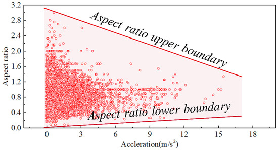 Scatter plot of aspect ratio versus acceleration.