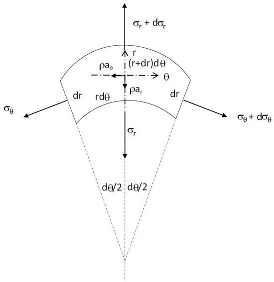 In fact, Equation (7) implies an axisymmetric nature, namely, no dependence on the polar angle . Hence, we have the definition of the so-called hoop strain , a normal strain in the tangential or direction, defined as where u stands for the radial direction expansion displacement, which is only dependent on the radial position marked by the radius r. Likewise, we can define the radial normal strain as .