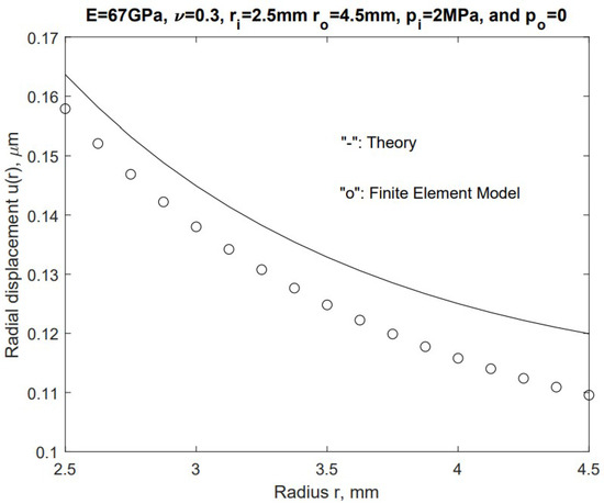 Using Equation (8), we have the following radial direction displacement distribution: