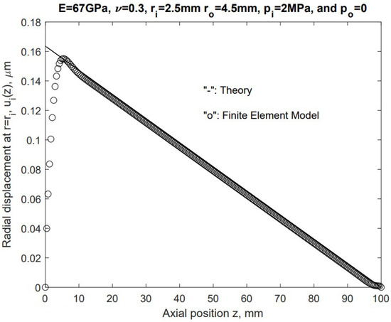 The verification and validation of the radial displacement distribution in the z-direction.