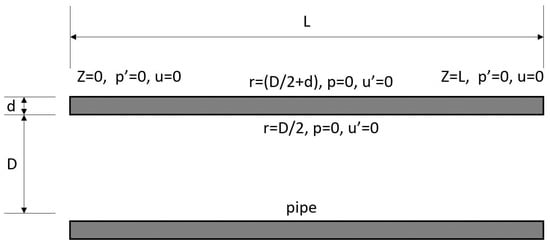 For the cylindrical pipe, as illustrated in Figure 7, it is convenient to express Equation (17) in the cylindrical coordinate system. Using the separation of variables method, we have By substituting the pressure expression into the governing equation in Equation (17), we can derive