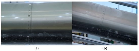 As shown in Figure 5, cuttings of different particle sizes exhibited pronounced stratified deposition and transport behaviors within the annulus during the experiments. Large-sized blocky cuttings, dominated by gravitational forces, rapidly settled toward the lower side of the wellbore and progressively accumulated at the bottom of the annulus, forming a dense basal cuttings bed. In contrast, relatively smaller particles were influenced by turbulent shear forces from the fluid and remained temporarily suspended above the basal bed, forming a dilute upper suspension layer. Under low-flow-rate conditions, particle inertia became the dominant factor governing transport behavior. Particles primarily advanced along the annular bottom through rolling, sliding, and intermittent saltation, representing a characteristic “intermittent transport” mode. These upward migration processes led to frequent collisions and disturbances between the large-sized cuttings and the finer particles in the upper suspension zone, triggering localized, periodic deposition–erosion cycles and resulting in the formation of characteristic bedform structures resembling sedimentary ripples. This dynamic restructuring mechanism was manifested in the experiments by reduced flow field stability and periodic fluctuations in flow resistance parameters.