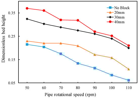 As shown in Figure 8, the experimental results indicate that the height of the cuttings bed responds significantly to changes in drill pipe rotation speed, and this trend is strongly modulated by particle size.