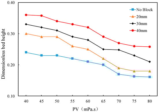 The rheological characteristics of drilling fluids, especially plastic viscosity, exert a significant influence on the dynamic behavior of cuttings during transport. Viscosity governs not only the suspension stability of solid particles within the annulus but also the ability of the fluid to generate sufficient shear stress and lift forces to counteract particle settling. As such, it serves as a pivotal factor in determining the overall efficiency of hole cleaning operations. Figure 9 illustrates the variation in cuttings bed height under different plastic viscosity conditions.