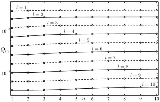 It is, however, the IGRF power spectrum [] that allows us to connect the coefficients of the Earth’s surface magnetic field to the Galerkin expansion coefficients in (19) and to estimate outer core magnetic field strength and magnetic helicity.