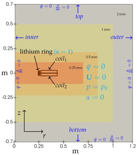 Computational setup ( cross-section) used to simulate the experiment of an electromagnetically imploding lithium ring.