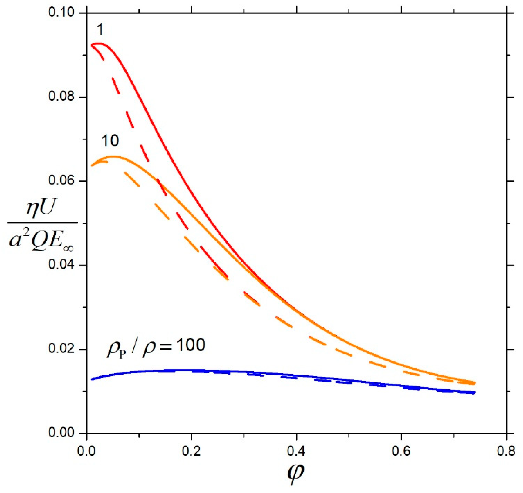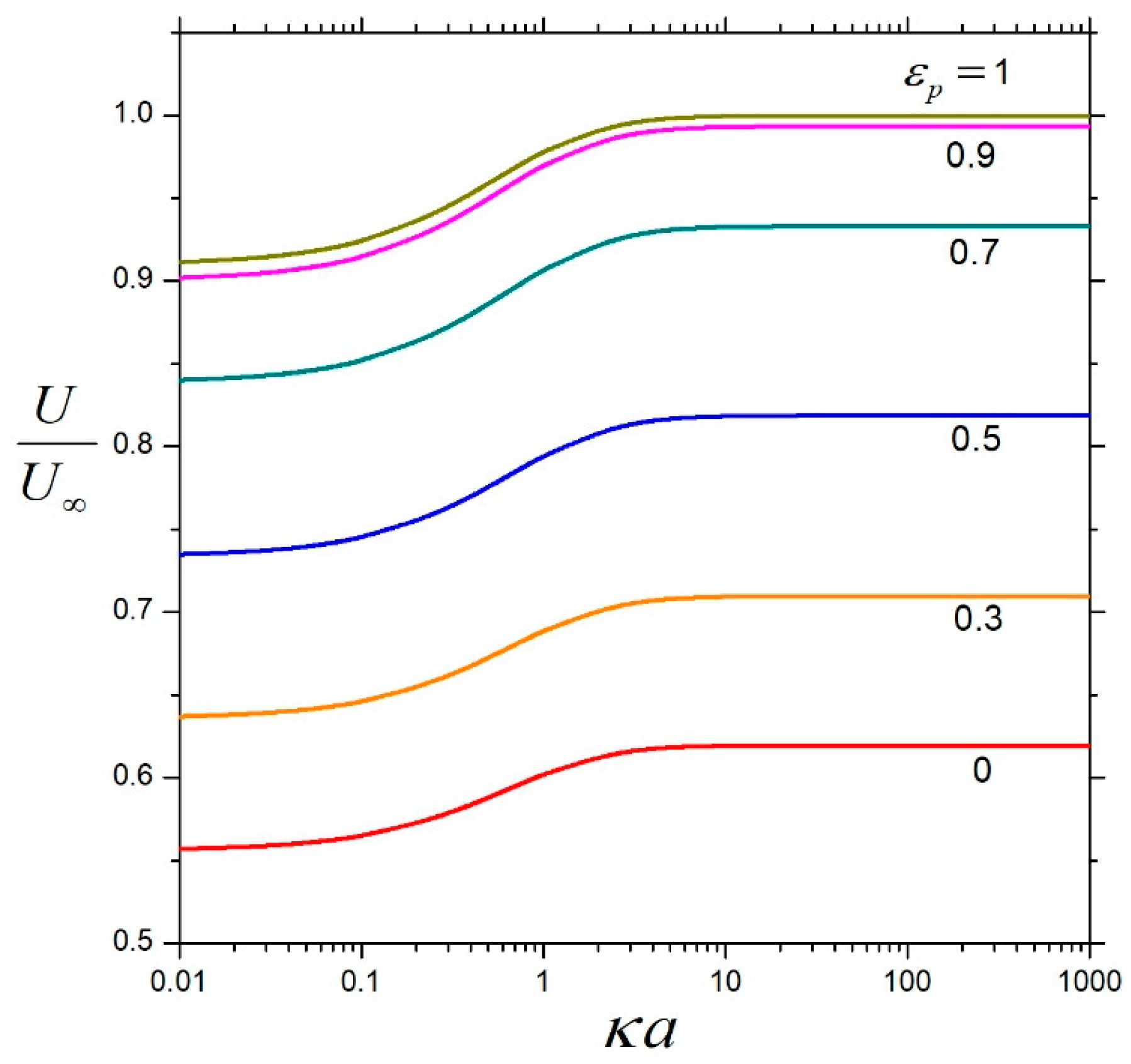 - Gopmandal, P.P.; Bhattacharyya, S.; Barman, B. Effect of Induced Electric Field on Migration of a Charged Porous Particle. Eur. Phys. J. E 2014, 37, 104. [Google Scholar] [CrossRef]