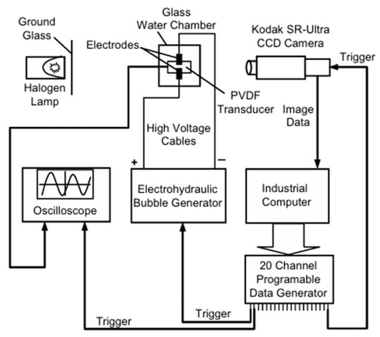 Experimental setup of the PVDF array sensor and the electrohydraulic bubble generator [76]. Reprinted from [76]. Copyright (2007), with permission from Elsevier.