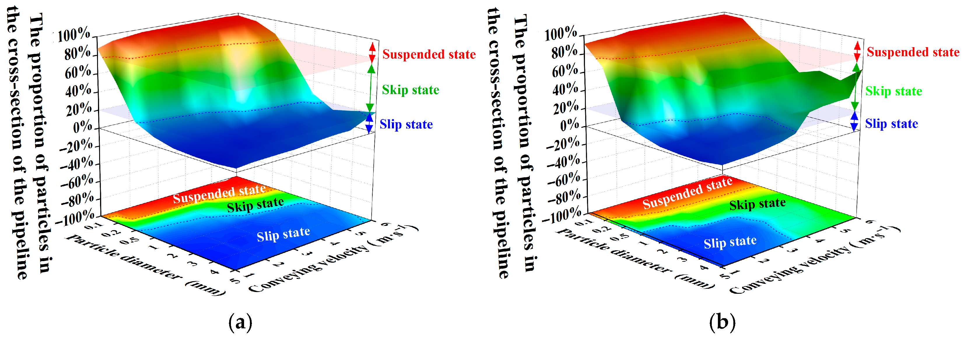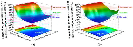- Considering the relationship between the flow state of the slurry in the conveying pipeline and the resistance loss, resistance loss calculation models for the suspended state, skip state, and slip state based on the swirl characteristics were established, respectively. The average error is 9.04% and the maximum error is 19.38%.
