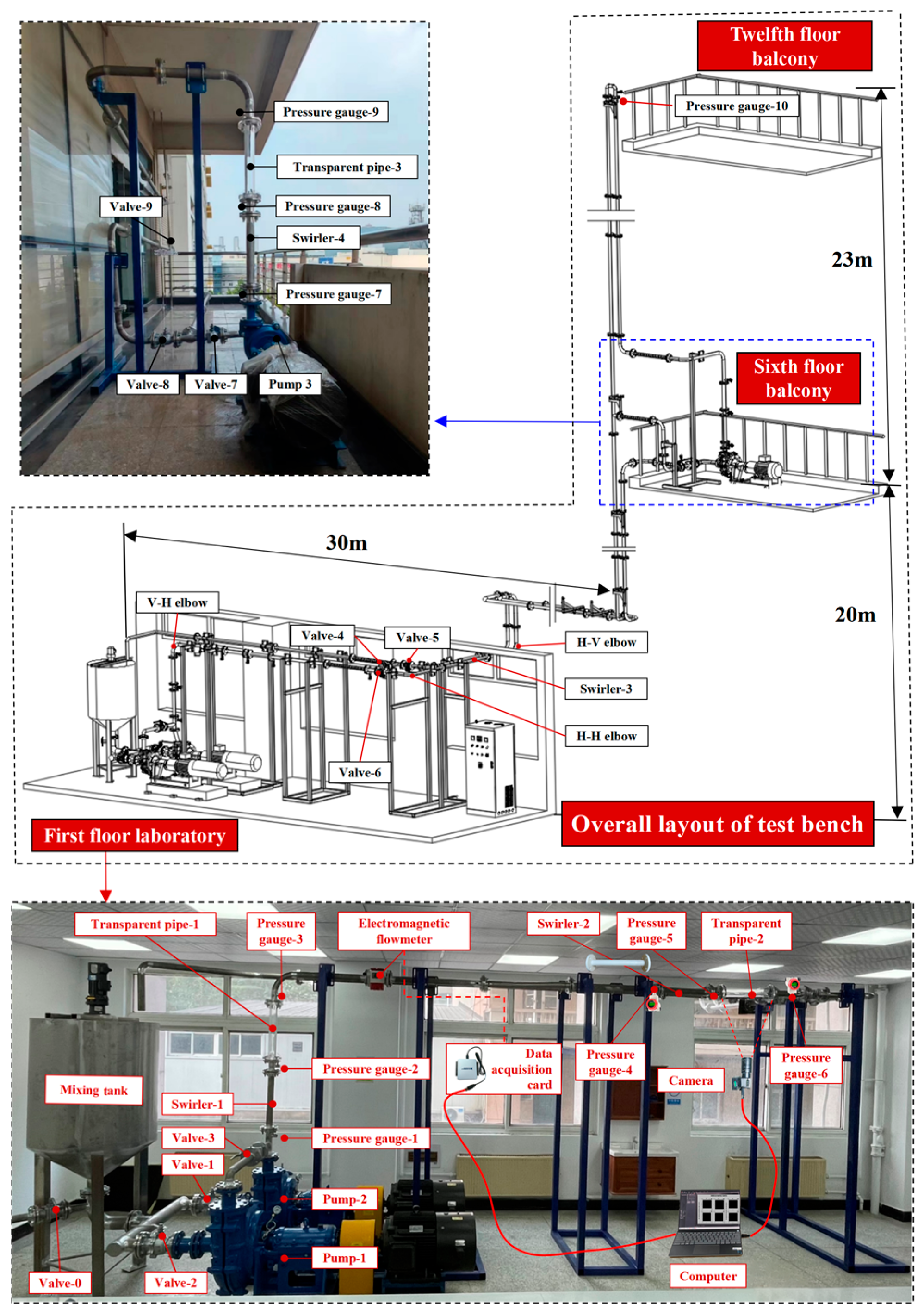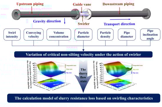 - The addition of the swirler transforms the axial flow field in the conveying pipeline into a spiral flow field. The dragging force of the circumferential water flow can cause the large particles that have settled at the bottom of the pipeline to rise, making the particles easier to suspend. As a result, the slurry changes from a slip state to a skip state, thereby reducing the resistance loss.