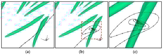 Figure 1a), the streamline appears as a straight line, and no vortex is visible. However, if the observer is moving at the local streamwise velocity, an evident rotational motion of the flow becomes visible (