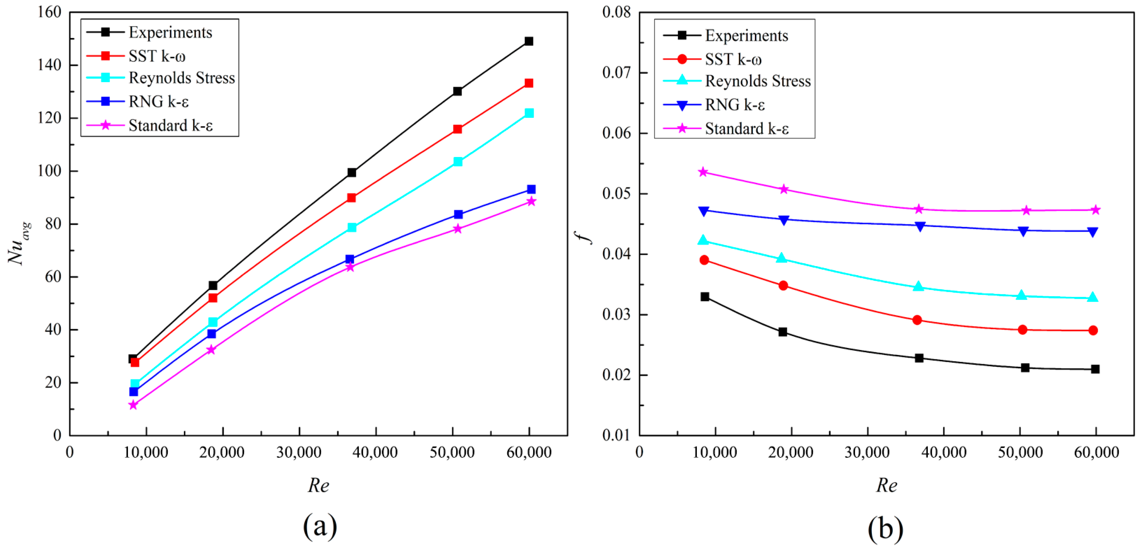Nuavg) increases with higher Reynolds numbers, indicating improved convective heat transfer. Turbulent flows are known to exhibit superior heat transfer characteristics compared to laminar flows, making them more effective in dissipating the intense thermal loads encountered in rocket engine cooling systems.
