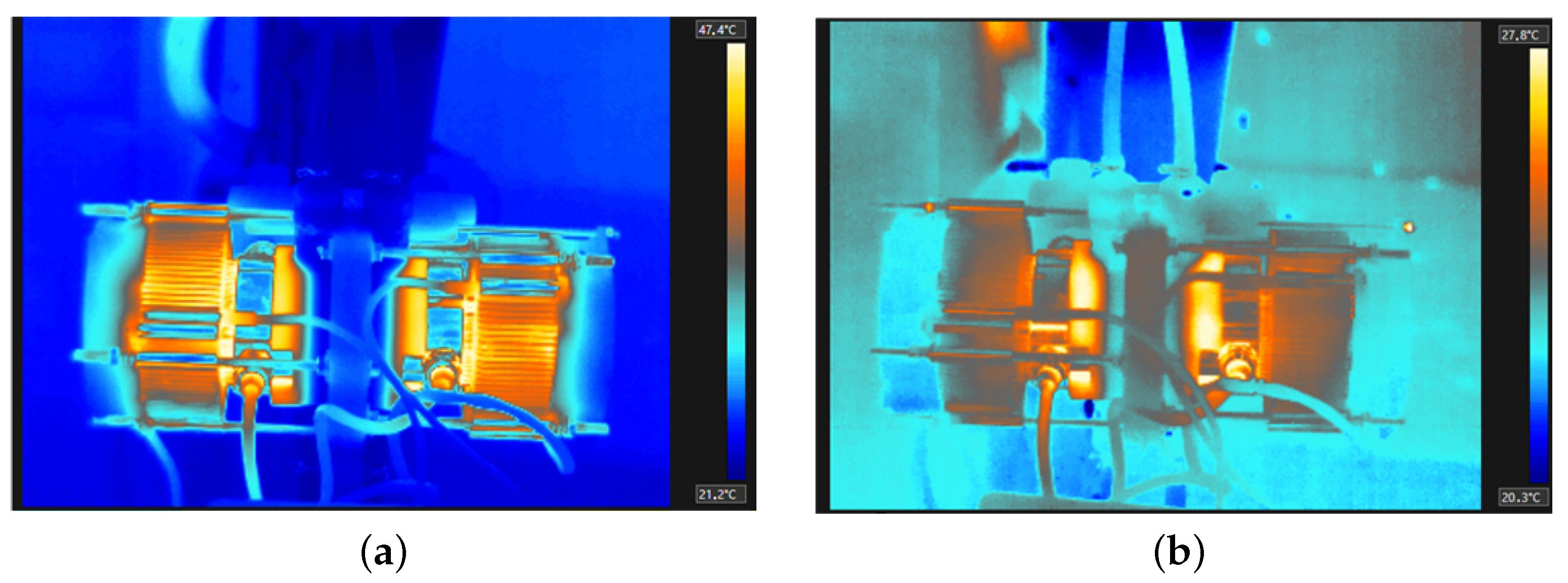 - Sciuto, G.L.; Skupien, S.; Kowol, P.; Capizzi, G.; Coco, S. Temperature Estimation Using Infrared Thermal Imaging Camera and Temperature Sensor Probe in the Electromagnetic Diaphragm Pump. In Proceedings of the 2025 17th International Conference on Electronics, Computers and Artificial Intelligence (ECAI), Targoviste, Romania, 26–27 June 2025; IEEE: New York, NY, USA, 2025; pp. 1–6. [Google Scholar]