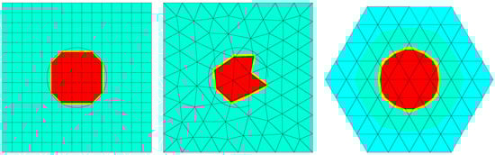 Figure 6 illustrates the results obtained for the Laplace problem in the context of discrete mechanics for several mesh examples: a structured Cartesian mesh, an unstructured mesh based on arbitrary triangles, and a mesh based on regular triangles.