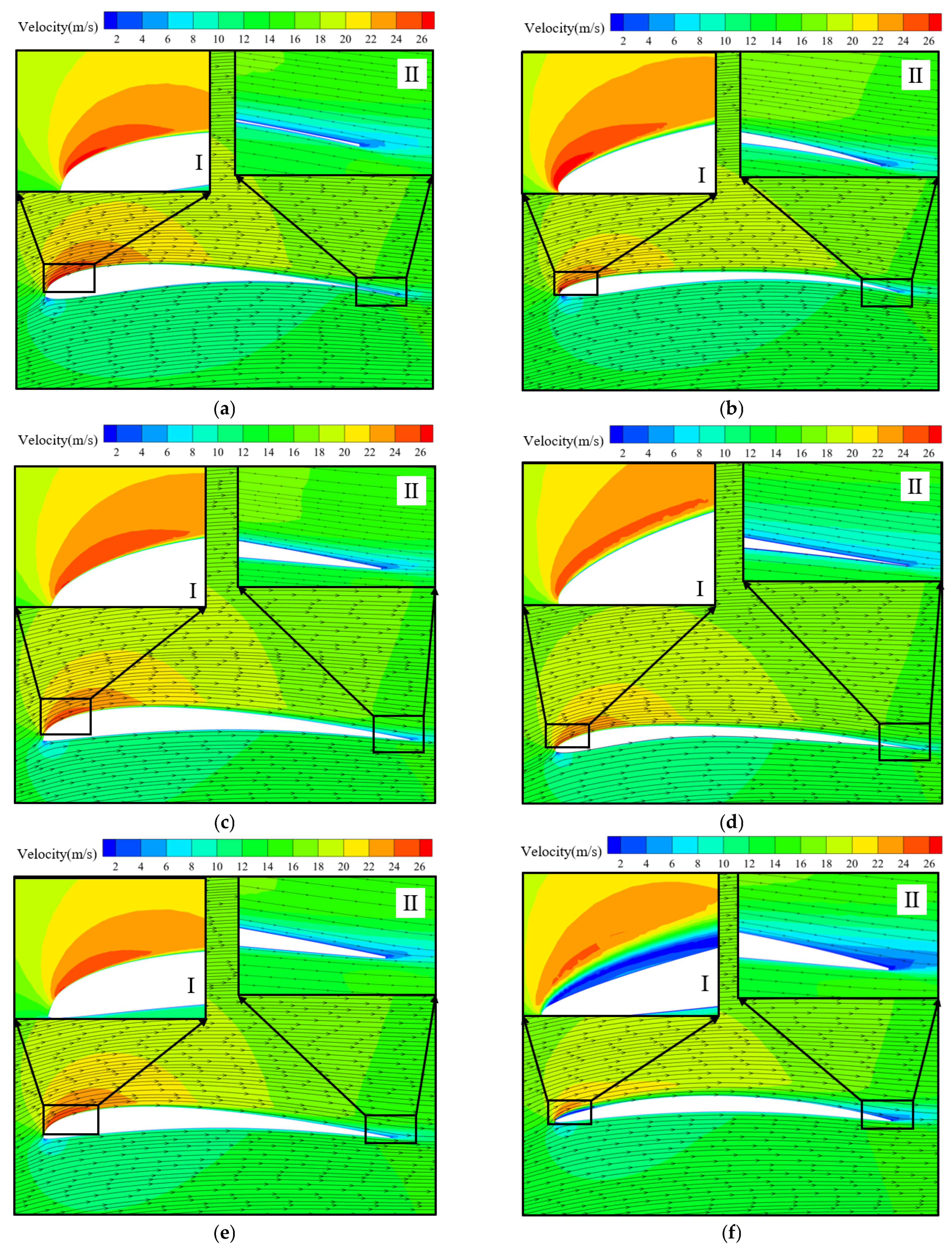 - Zhang, J.; Liu, H. Effect of Blade Tip Pattern on Blade Load and Vibration Characteristics of a Twin-Stage Axial Flow Fan. J. Mech. Sci. Technol. 2022, 36, 3487–3500. [Google Scholar] [CrossRef]