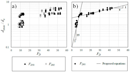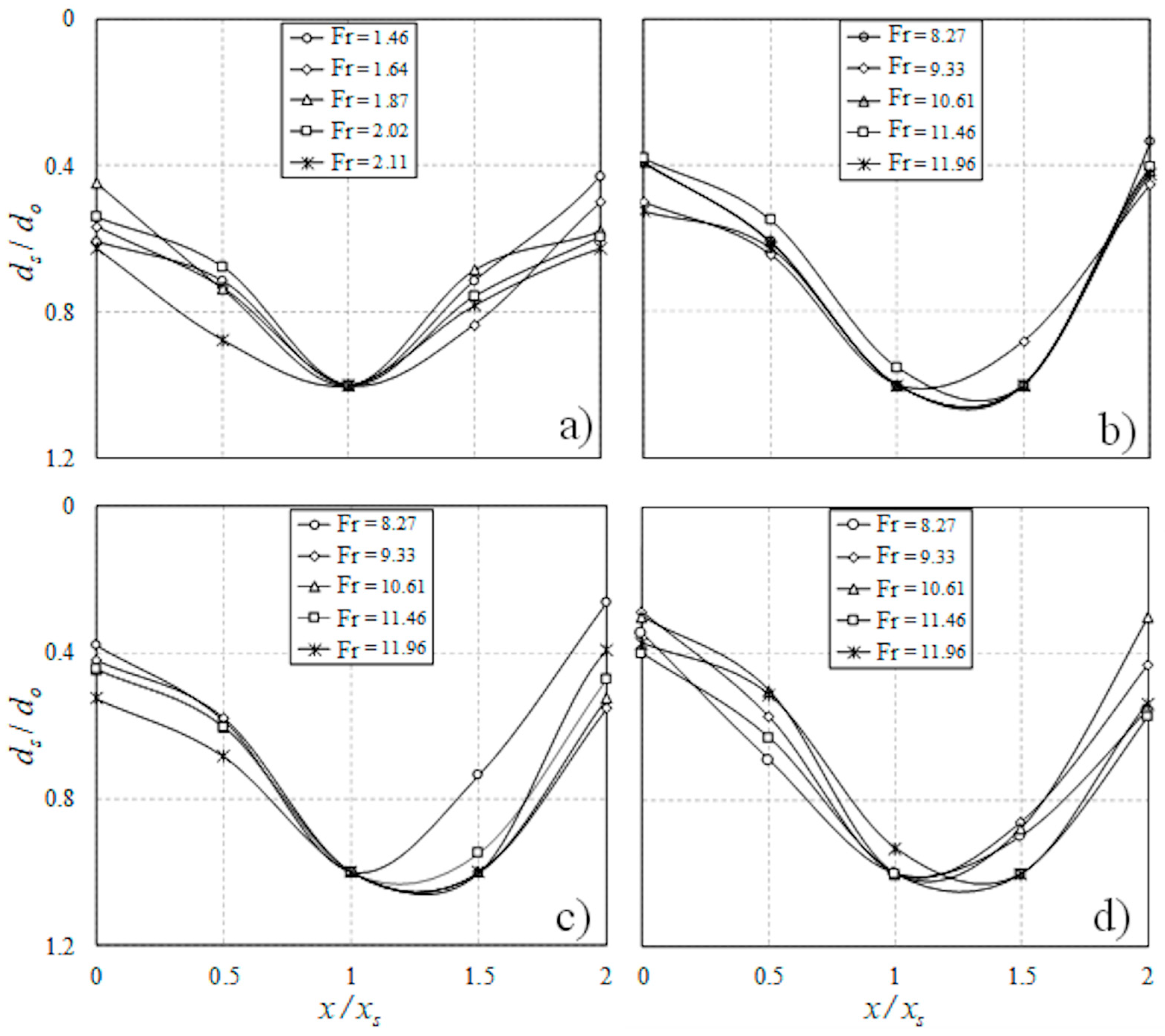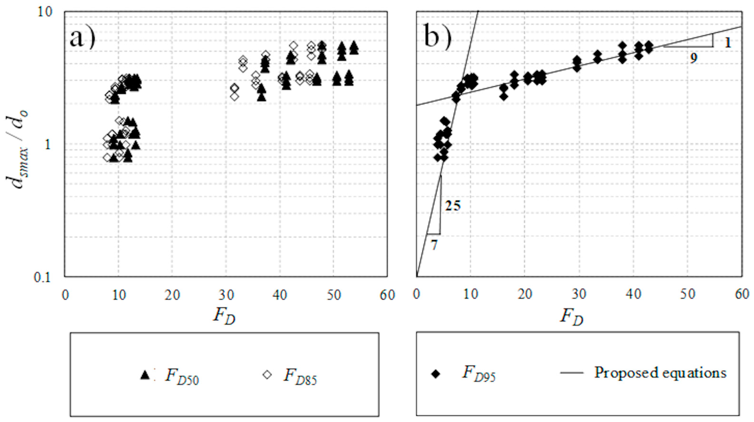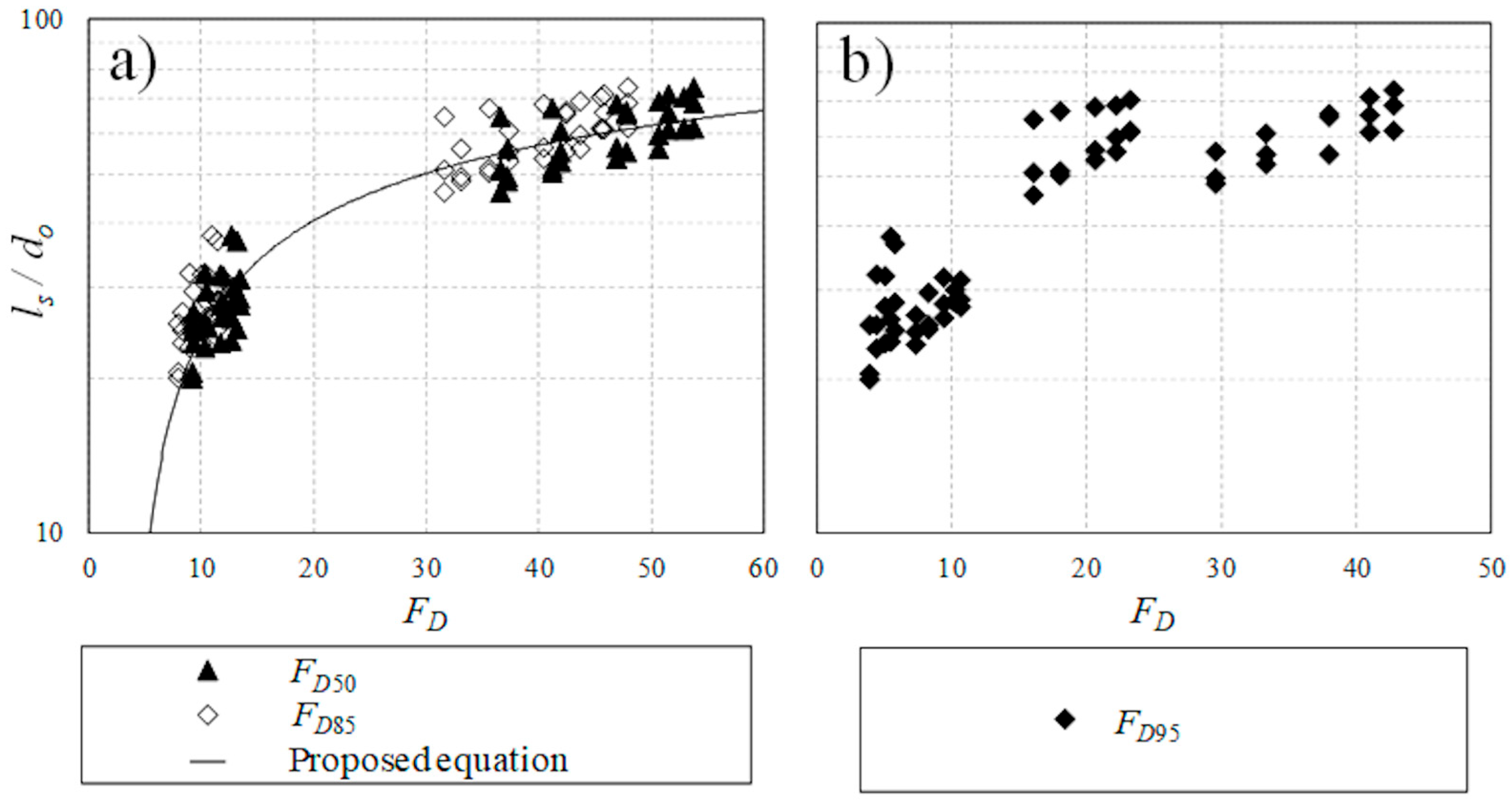 - It should be noted that the proposed models based on the obtained results are limited to the tested range of jet Froude number (1.46 ≤ Fr ≤ 11.96), densimetric Froude number (4.02 ≤ FD ≤ 42.83), and submergence ratio of 2 ≤ Yt/do ≤ 12.