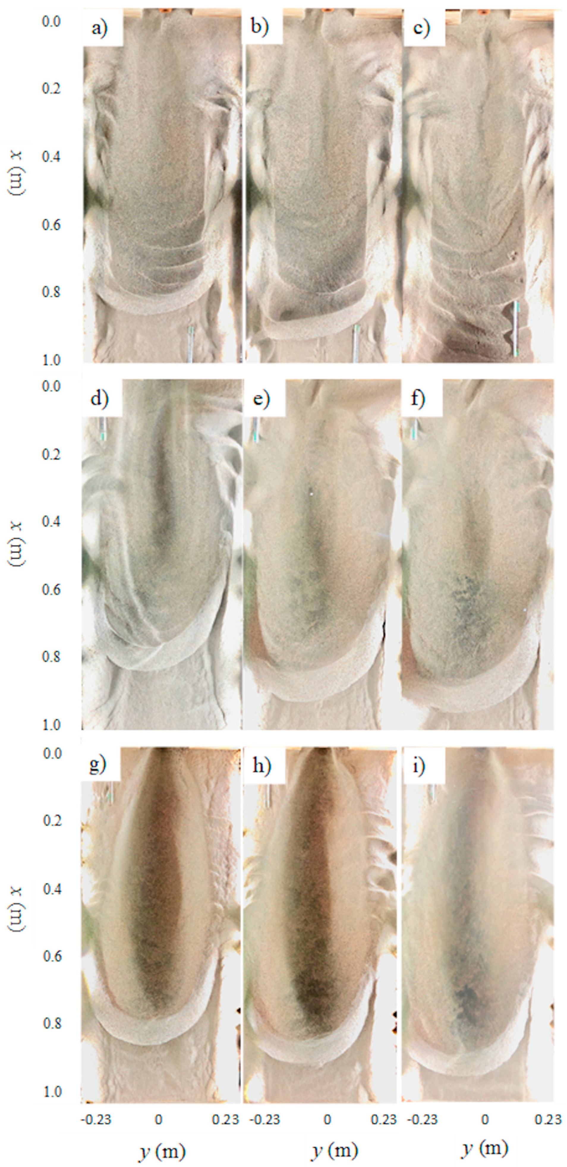- Manzouri, M.; Azimi, A.H. Laboratory experiments evaluating sedimentation and mound formation of obliquely discharged sand particles in stagnant water. Int. J. Sediment Res. 2019, 34, 564–576. [Google Scholar] [CrossRef]