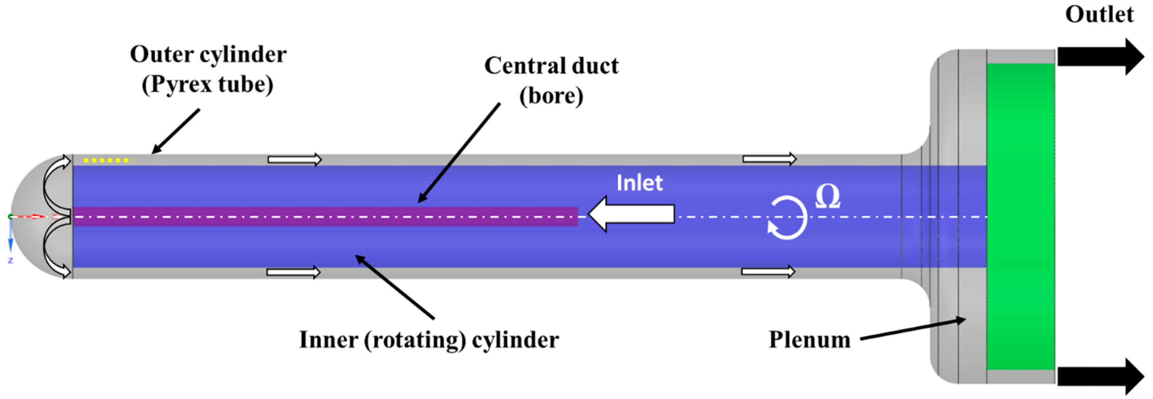 - Hwang, J.Y.; Yang, K.S. Numerical study of Taylor–Couette flow with an axial flow. Comput. Fluids 2004, 33, 97–118. [Google Scholar] [CrossRef]