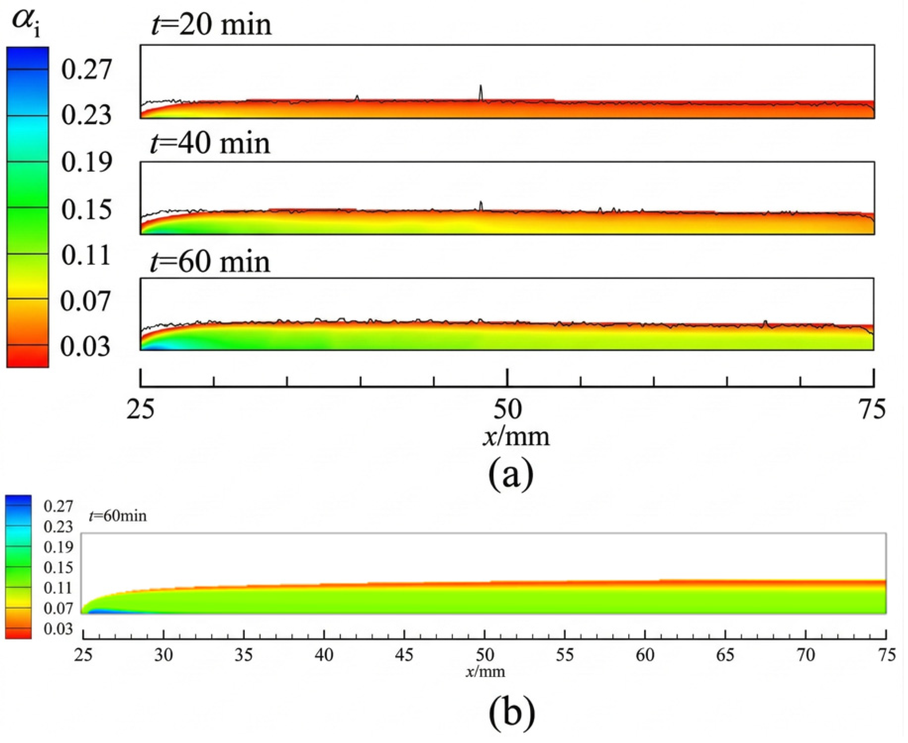 - Under natural convection conditions, lower cold plate temperatures result in greater frost layer thickness and higher ice volume fractions across all spatial positions.