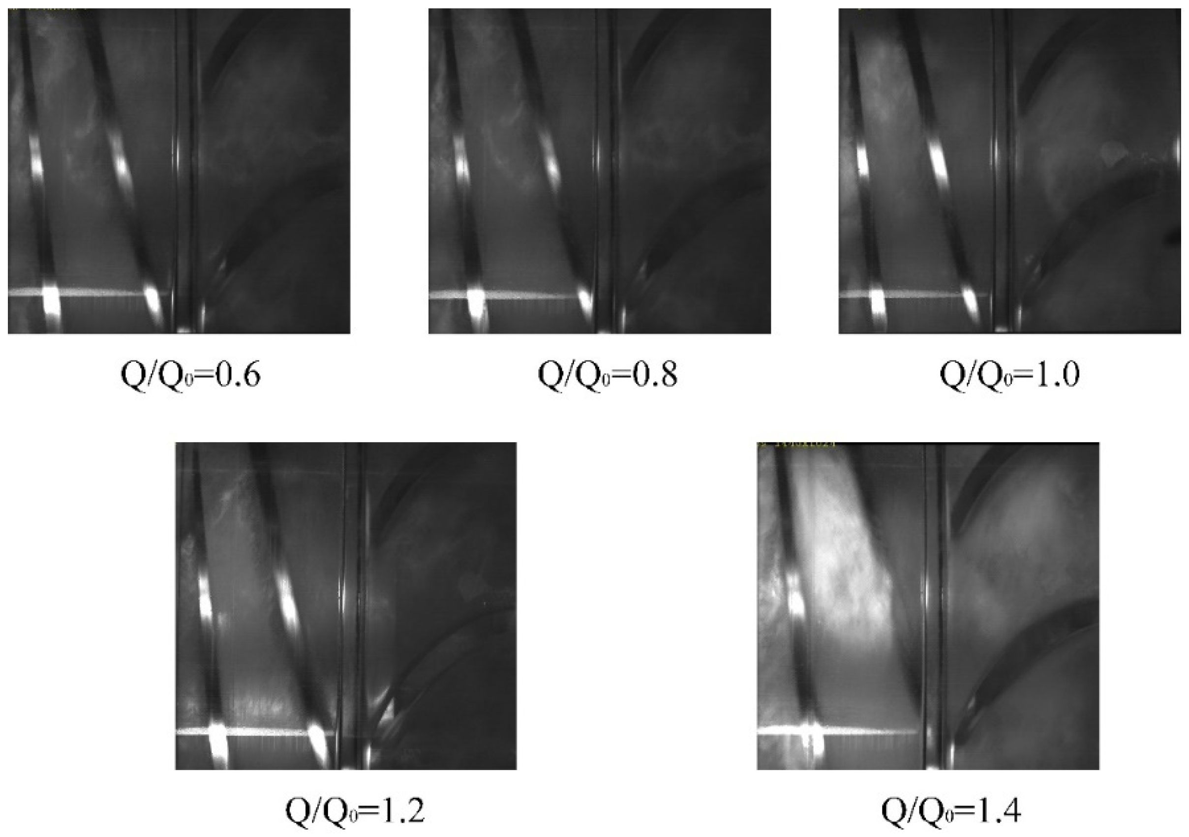 It is worth noting that the variation trend of impeller vortex strength differs markedly from that of turbulent kinetic energy discussed previously. This discrepancy arises because, under conditions of high vortex strength, rigid-body vortices tend to dominate the flow. Such vortices exhibit a high degree of coherence, with fluid elements rotating synchronously within the vortex core and producing minimal velocity fluctuations. As a result, turbulent kinetic energy remains relatively low despite the presence of strong vortical structures.